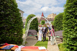 S Blankou a Filipem jsme už loni v parném létě fotili hravě-romantické párové focení s koloběžkami a letadýlkem, které jsme si moc užili, tak nám udělalo velkou radost, že Zuzka mohla být i u jejich letošní krásné červnové svatby. Obřad se konal pod širým nebem v uzavřené zahradě jihlavského Hotelu Gustav Mahler, kde následně proběhla i skupinová fotografování a také focení mladých novomanželů. Nádherné sytě fialovými květy obsypané rododendrony, růžový, právě rozkvetlý hloh a působivé obrysy bývalého dominikánského kláštera - dnešního hotelu - dohromady vytvořily opravdu kouzelná zákoutí, ve kterých vznikaly opravdu pohádkové fotografie.