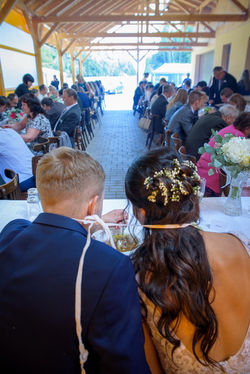 Svatební obřad téhle prima dvojice se odehrál v chrámu Nanebevzetí Panny Marie v Polné, který je svou světlou výmalbou a vznešenou zlato-červenou výzdobou pro svatby opravdu jako stvořený. :) Následovala hostina pod vyzdobenou pergolou u fotbalového hřiště v Nížkově. U opodál stojící originální svatební brány z březových kmínků se pak fotily skupinky. :) U párové focení jsme v blízkém okolí natrefili na krásné makové pole a svazenkové políčko, takže když si navíc Zuzka a vítr pohrával s Kátiným úžasným závojem a nebe bylo plné bílých beránků, vznikly opravdu velmi kouzelné fotografie. :)